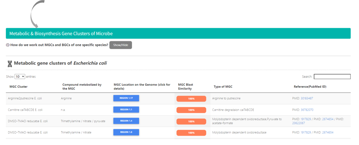 2. Microbe page shows detailed information
