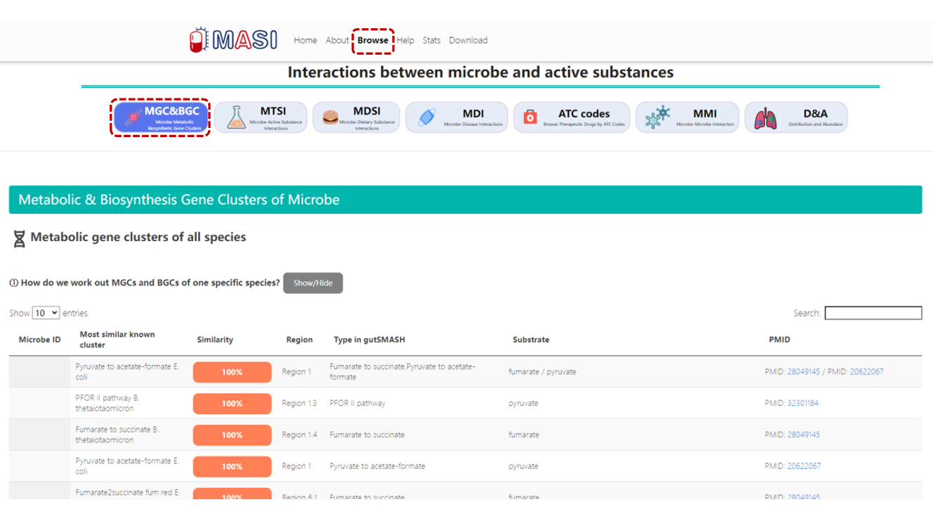 3. Browse all data in MASI