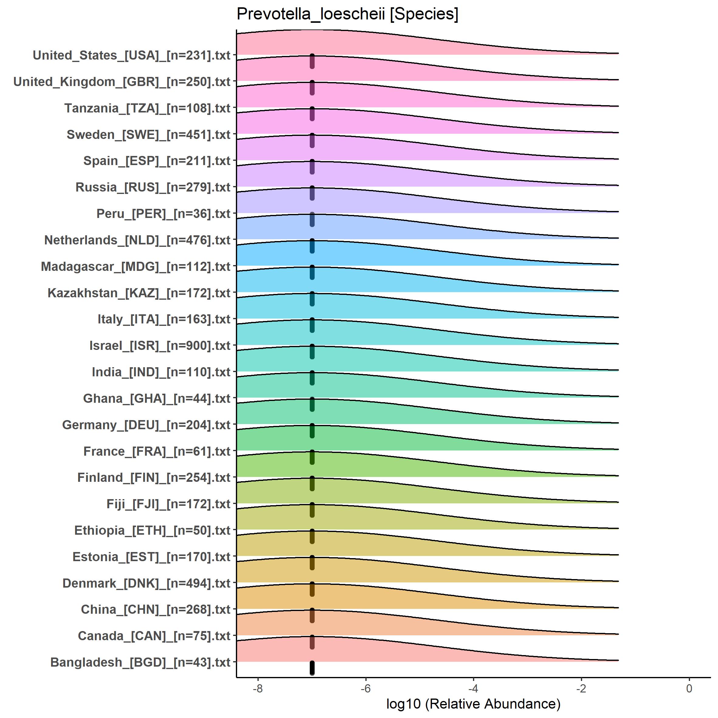 Relative abundance landscape of Prevotella loescheii in human gut microbiota samples